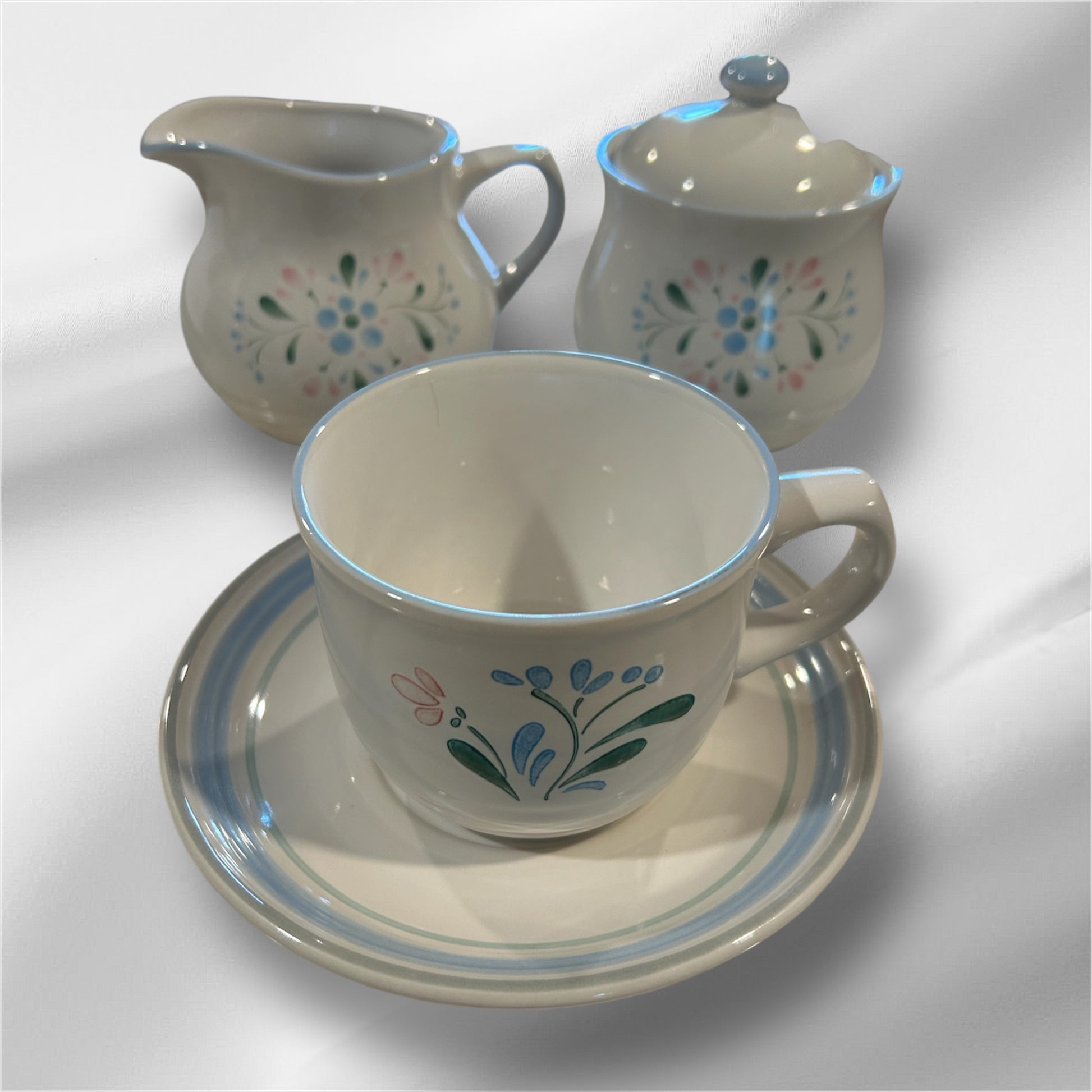 Experience the charm of vintage elegance with the Fascino Japan Stoneware Coffee Set. Featuring a delicate blue and pink flower design, this set of 8 combines timeless beauty with durable craftsmanship. Perfect for serving guests or enhancing your daily coffee ritual, it brings a touch of sophistication and warmth to every cup. Make your coffee moments unforgettable with this exquisite collection.